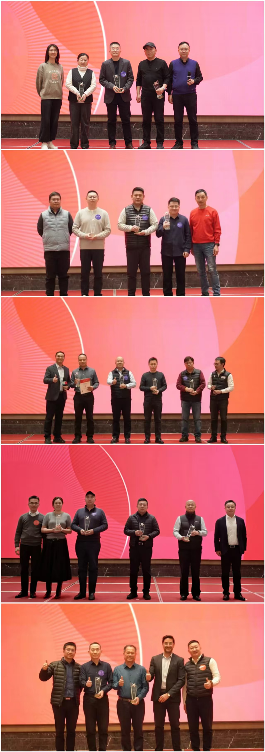 晚宴现场举行了隆重的表彰仪式,对2025年有业绩突破和技术突破的近20个获奖经销商进行嘉奖。沉甸甸的荣誉不仅是对过去一年辛勤付出的肯定,更是对未来持续奋进的激励。获奖代表表示,将以此年会为契机,深化与公司的战略合作,全力以赴落实各项部署,共同书写业绩增长新篇章。