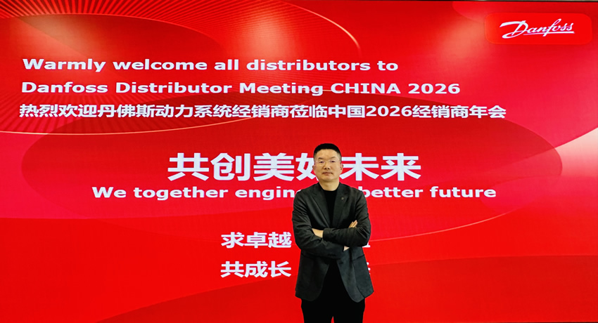 2026 年 1 月 21 日,丹佛斯动力系统 2026 年经销商合作伙伴年会在刚启用不久的丹佛斯海盐第二园区盛大启幕。来自全国各地的近两百名经销商合作伙伴与丹佛斯团队齐聚一堂,以 “求卓越、创价值、共进取、赢未来” 为核心主题,复盘过往协同成果,共话绿色转型新机遇,擘画 2026 年深度合作蓝图。此次年会选址海盐第二园区,既彰显了丹佛斯深耕中国市场、强化本土制造与创新的坚定决心,更让合作伙伴沉浸式感受了丹佛斯绿色智造的硬核实力。 会上,丹佛斯动力系统中国区领导团队重磅发布 2025 年亮眼业绩:在复杂的市场环境下,于中国区负责人海松总的带领下,依托与经销商伙伴的紧密协同,实现了 71% 的高速增长,用实打实的成果印证了 “合众之力、共赢发展” 的核心合作理念。