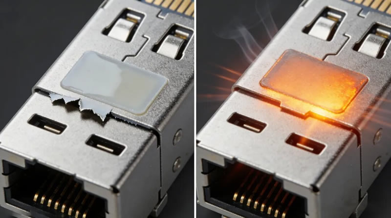 难点③:阻与材料可靠性(最大技术卡点) - 界面热阻占总热阻50%+,传统垫片/凝胶导热率不足、贴合差 - 软凝胶易被热循环挤出、硬垫片难贴曲面;硅油挥发污染光路、性能衰减 - 长期老化导致填料沉降、基体脆化,可靠性不达标