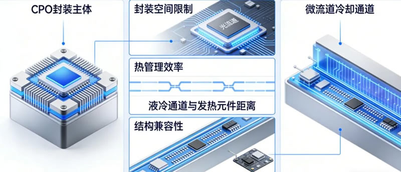 难点⑤:CPO专属散热难题 - 光引擎与电芯片热预算共享,一处过热全模块失效 - 微流道液冷需与封装深度集成,良率低、成本高 - 信号完整性与散热结构冲突,电磁干扰+热应力双约束