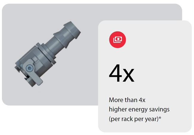 *Based on calculation made with Danfoss Hansen? UQD 02 vs Small size FD83 coupling pressure drop for a system with 42 servers. Replacing one set of Small full flow would require 8 sets of UQD02. **Please note that the given values are only shown as target values; these will be confirmed after product testing (available soon).