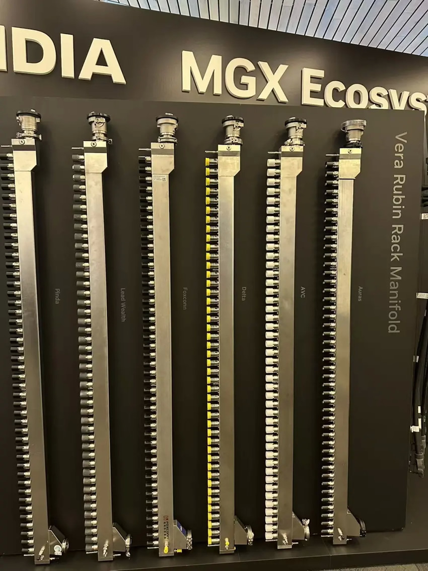 纬颖:展示先进液冷解决方案 纬颖携手纬创展示了新一代 AI 服务器以及先进的直接液冷解决方案。他们展示的 NVIDIA Vera Rubin NVL72 系统搭载 72 颗 NVIDIA Blackwell Ultra GPU ,并配备 NVIDIA ConnectX - 8 800Gb/s SuperNICs ,为推理模型提供了强大的运算性能。在液冷技术方面,纬颖展示了双面液冷板,可同时为 AI 加速器与其搭配的垂直电源供应 IC 提供最高达 4kW 的散热能力,结合自有微流道设计以及先进的电化学 3D 打印技术,散热效能可提升最多达 40% 。此外,还展示了两相液冷板等其他先进液冷系统。