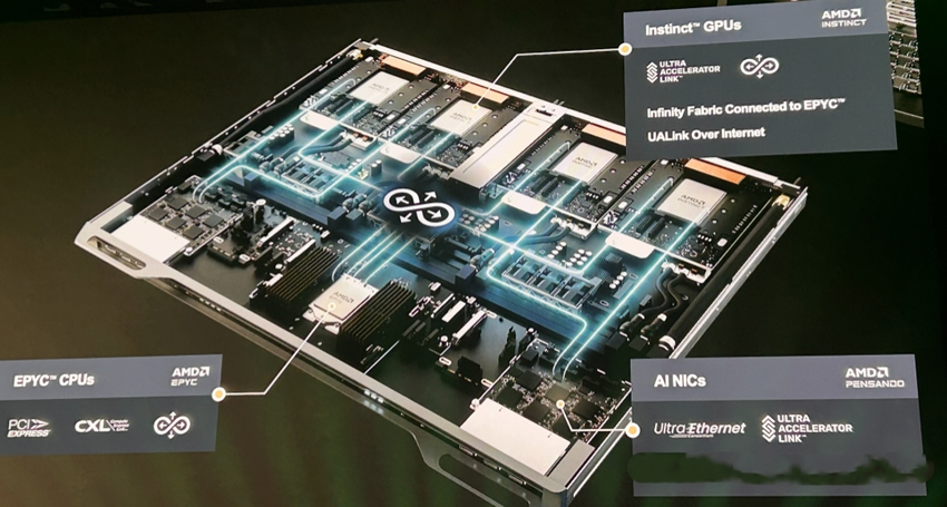 AMD :进军机架规模系统领域 AMD 公开展示了其面向人工智能与数据中心市场的全新 “Helios” 机架级平台。该平台整合了 AMD Instinct GPU 、 EPYC CPU 以及全新的开放互联架构,将搭载即将推出的 EPYC “Venice” CPU 与 Instinct MI400 加速器。 EPYC Venice 预计采用 Zen 6 架构,强化多芯片互联与内存带宽; MI400 系列延续 CDNA 架构路线,支持更高效的矩阵运算单元和改进的多 GPU 扩展性。同时, Helios 引入了快速断开式液冷系统,可在不拆卸主机组件的情况下进行维护,提高了数据中心的运行效率。 AMD 还与甲骨文合作,将上线一个大型数据中心集群,该集群将使用数万枚 AMD 最新的 AI 芯片。